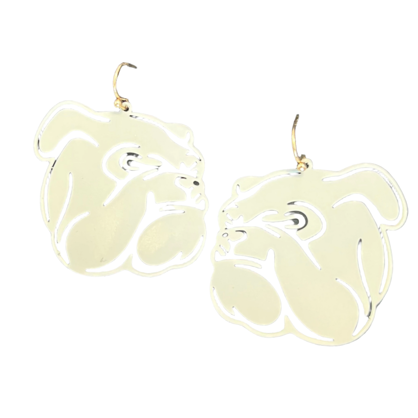 Show off your school pride with these Bulldog Silhouette Earrings. The classic grey and gold dangle earrings feature a bulldog silhouette, perfect for fans of Kinston Bulldogs. Take your style to the next level and show your spirit!