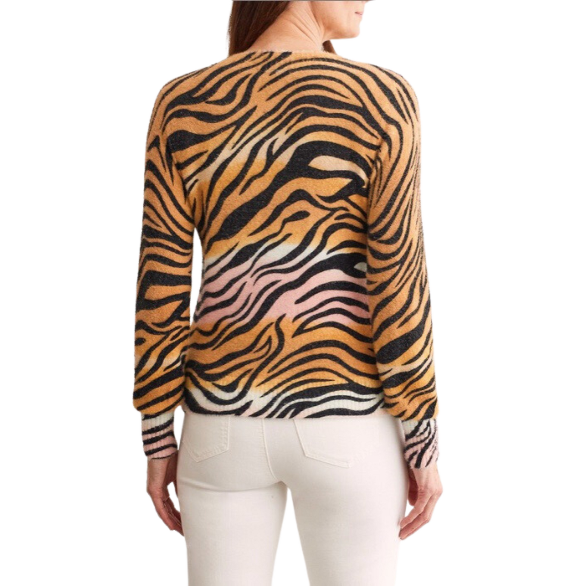 Show off your wild side with the Long Sleeve Crew Neck Sweater! This top features bold baked clay color with tiger-inspired animal print that's perfect for bringing out your inner fashionista. Crafted from Tribal brand fabric, it's designed to keep you comfortable and stylish all day long.