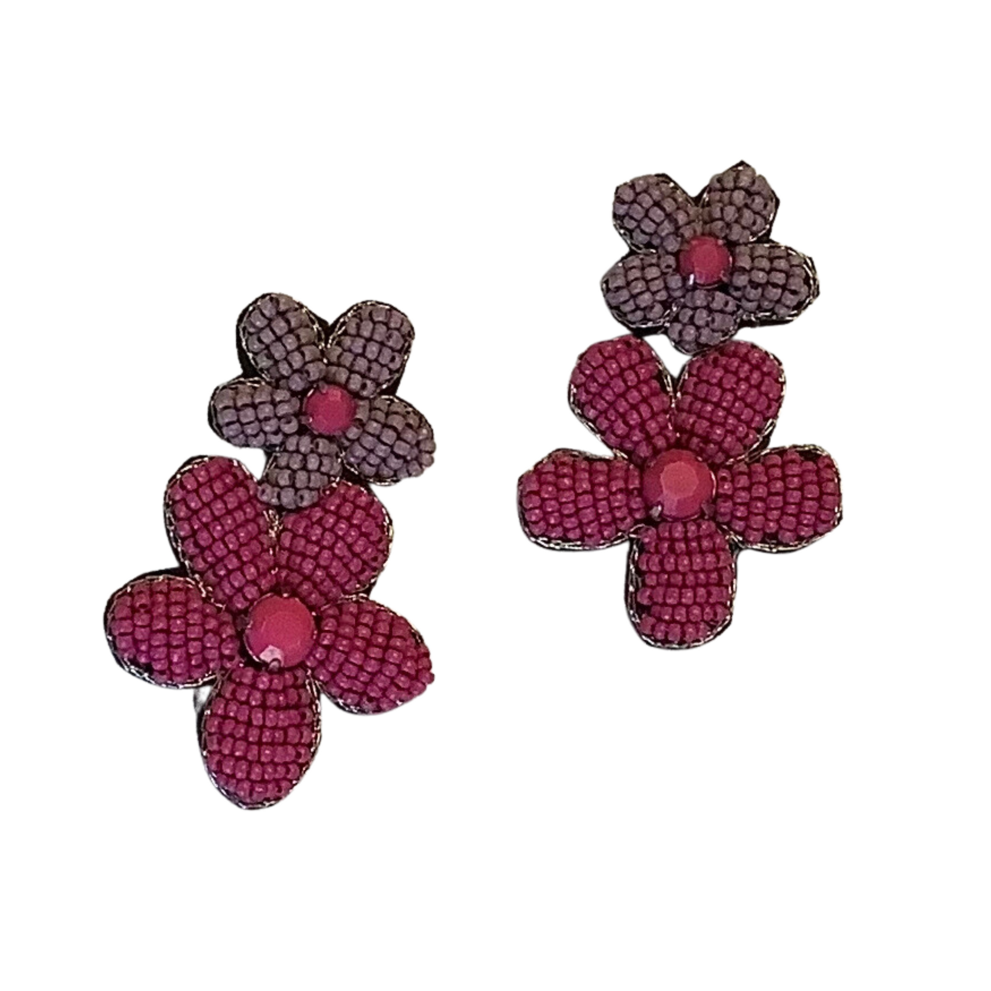 These stylish earrings feature a double flower design and an array of pink and purple beads for a bold visual statement. The lightweight and playful dangle earrings are the perfect accessory for any special occasion.