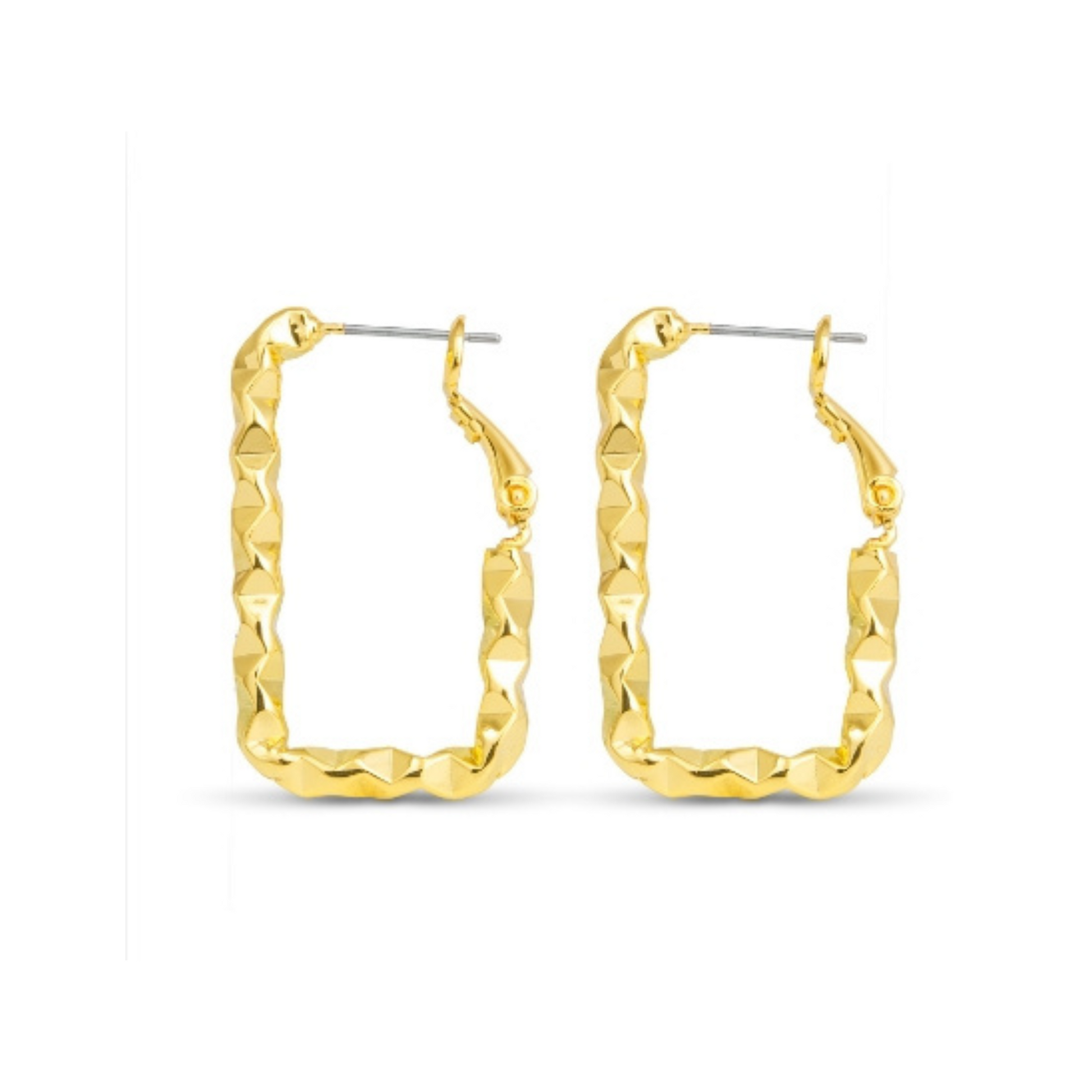 Upgrade your earring collection with our Gianna Twisted Rectangle Hoop Earrings. Crafted with a polished 18k gold dipped finish, these hoops add a touch of elegance with their unique twisted rectangle shape. Elevate any outfit with these timeless and versatile earrings.