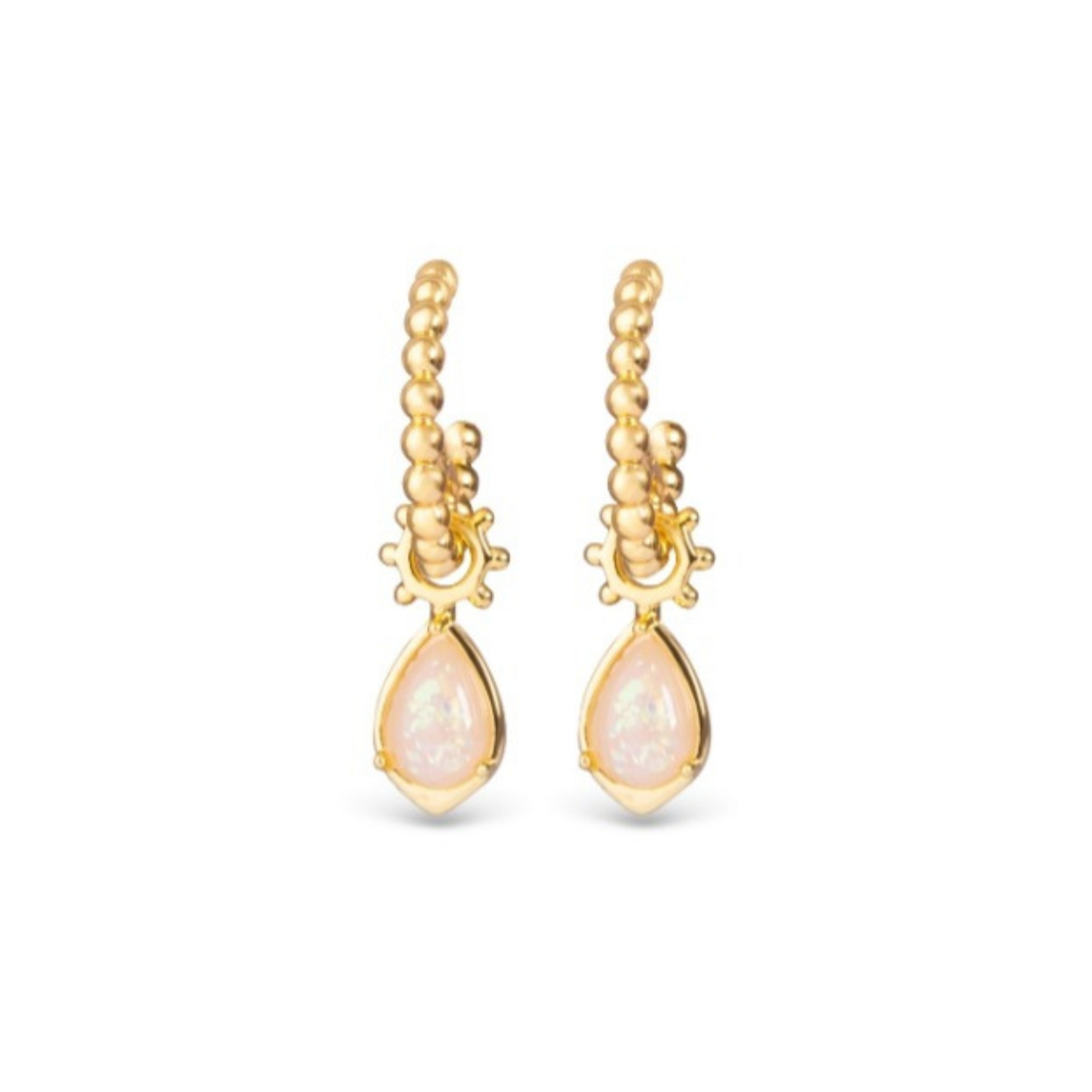 Gold Bead Huggie with Pear Shaped Opal Droplet