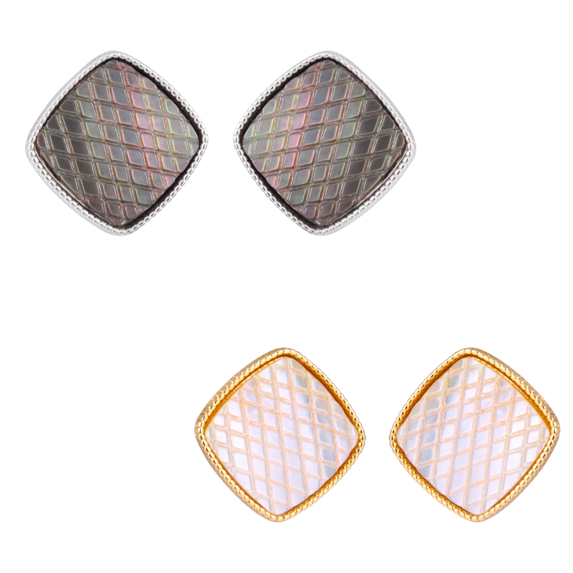 Crafted with precision, our Mother of Pearl Etched Square Studs come in your choice of silver or gold. These elegant earrings feature stunning mother of pearl, adding a touch of sophistication to any outfit. Upgrade your jewelry collection with these timeless studs.