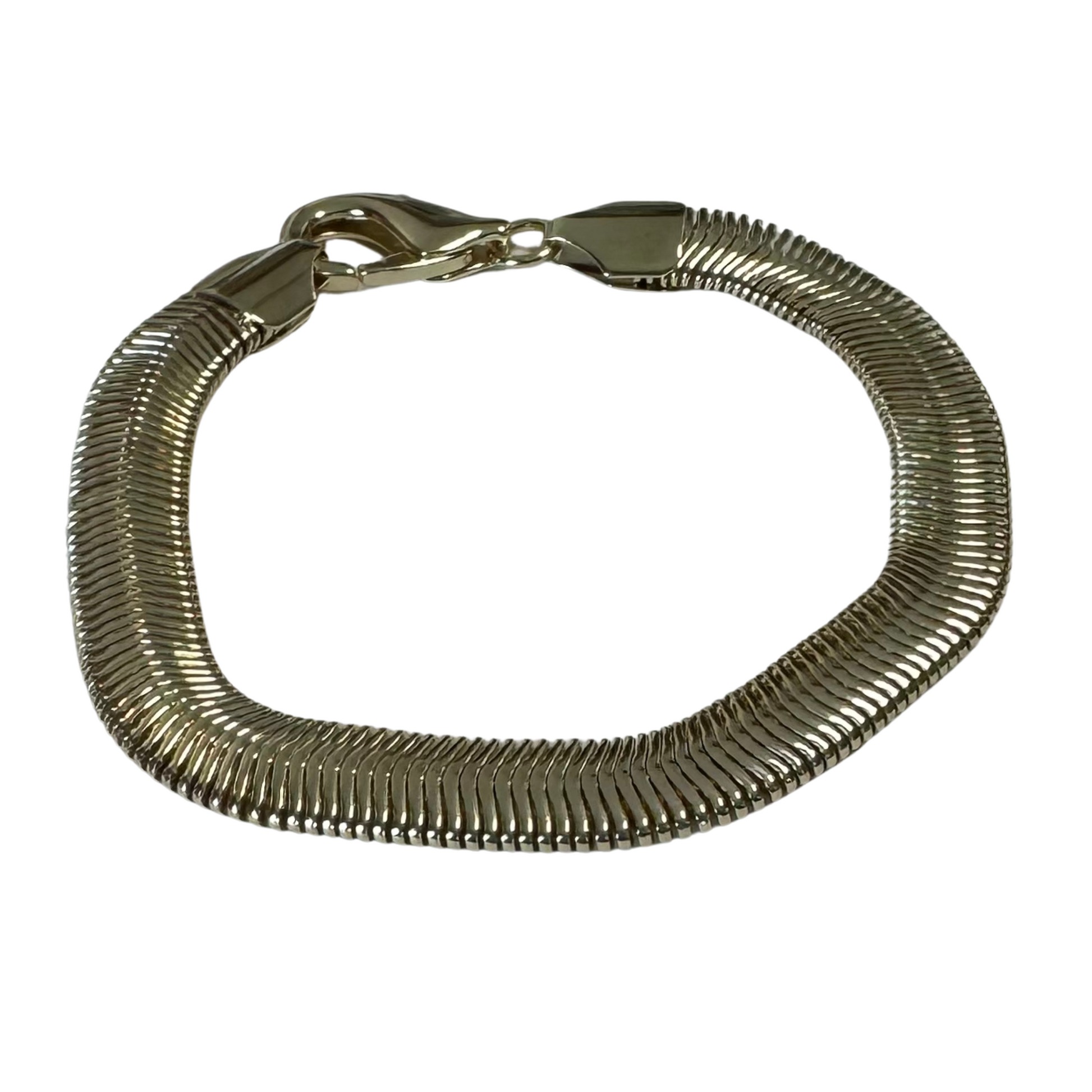 This Solid Accordion Bracelet is crafted with high-quality gold, bringing a touch of elegance and luxury to any outfit. With its timeless design and durable construction, it will be a lasting addition to your jewelry collection. Elevate your style with this stunning and versatile piece.