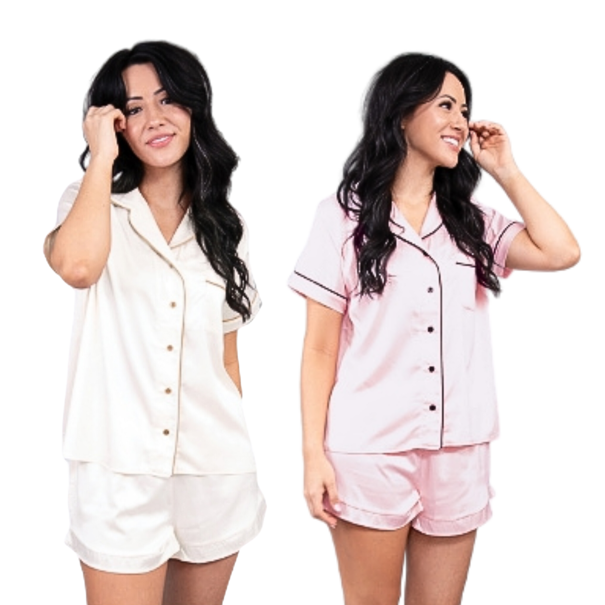 Upgrade your sleepwear with our Satin Ruffle Pajama Shorts. Made with luxurious satin, these shorts feature delicate ruffles and are available in three elegant colors: ivory, pink, and sea glass. Complete the set with the matching top for added comfort and style. Elevate your bedtime routine with these beautiful pajama shorts.
