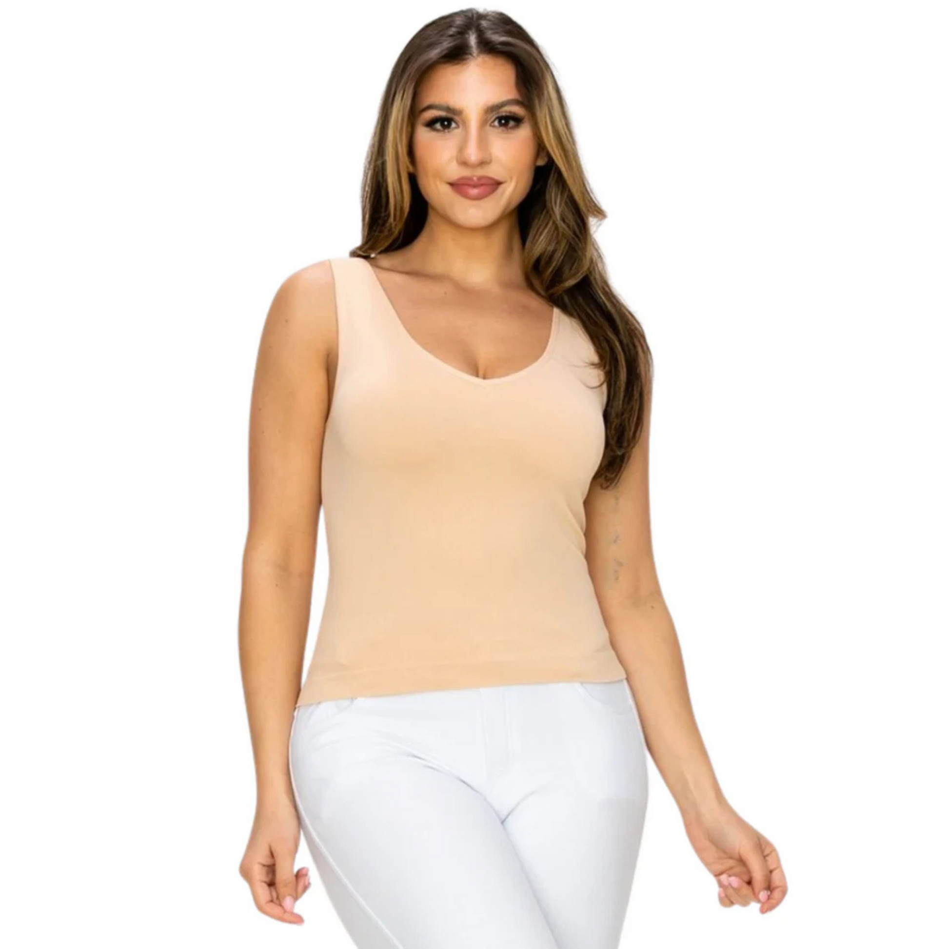 The Plus size Yelete Seamless Tank offers a smooth, comfortable fit with its seamless design, perfect for layering or wearing alone. Available in white, nude, and black, this tank top provides versatile options that effortlessly blend with any wardrobe. Its stretchy fabric contours to the body, ensuring a flattering silhouette and all-day comfort. Ideal for those seeking both style and practicality in their essentials.