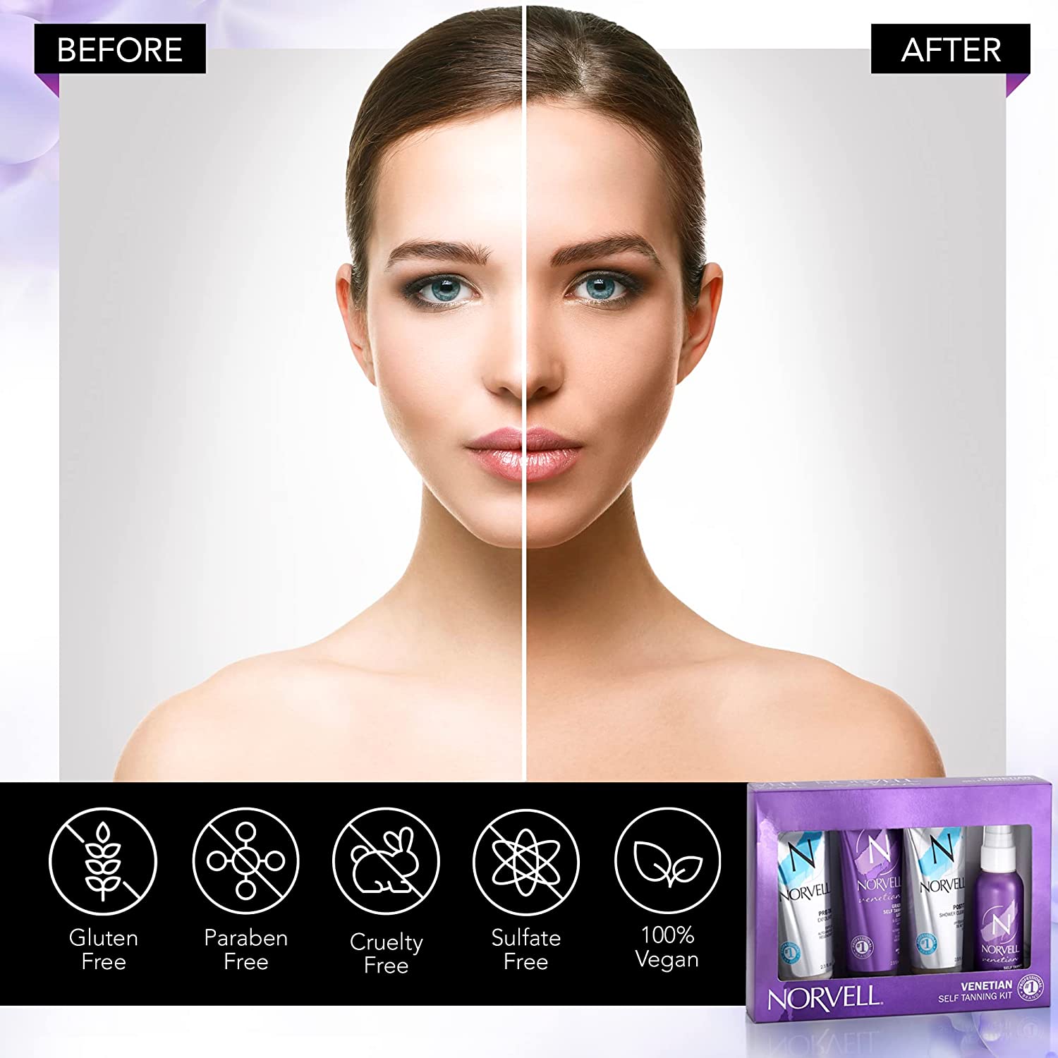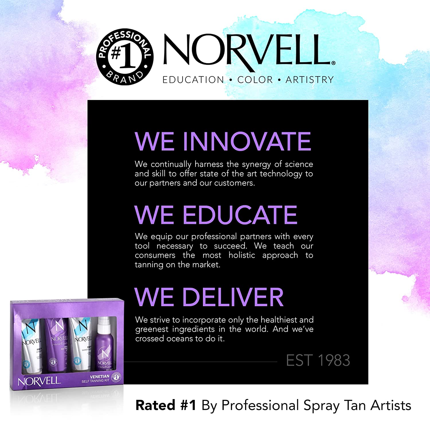 Exotic tan in a box! Norvell’s Self-Tanning Venetian Maintenance System is an all-inclusive selection of products to prepare, tan, and extend the tan. Thoughtfully combined to build a travel size set, this system is the culmination of top selling products – including our acclaimed violet and brown hued Venetian formula.